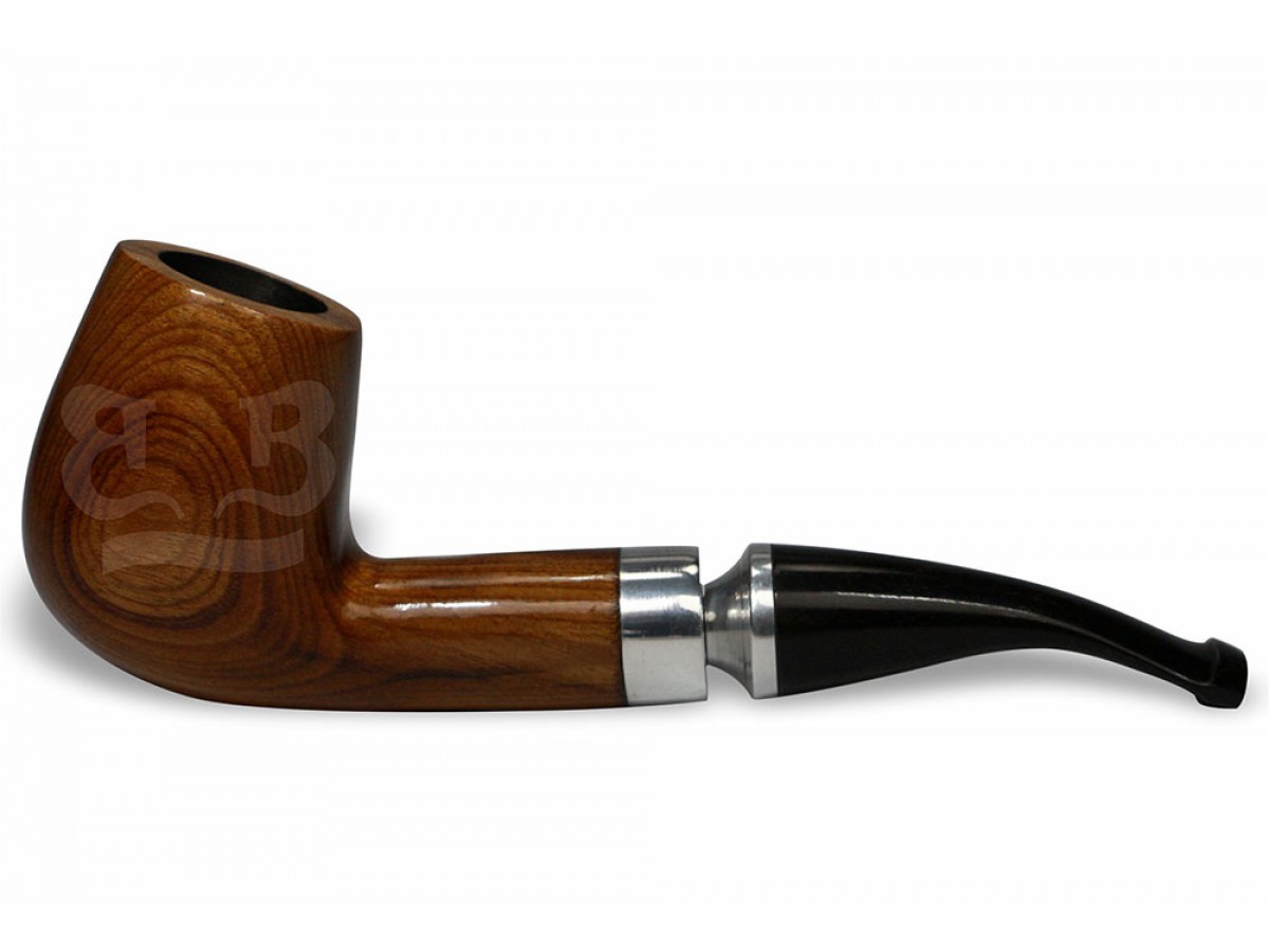 O anel prateado torneado reforça a estrutura do cachimbo e adiciona um toque contemporâneo ao conjunto, unindo tradição artesanal e acabamento refinado.