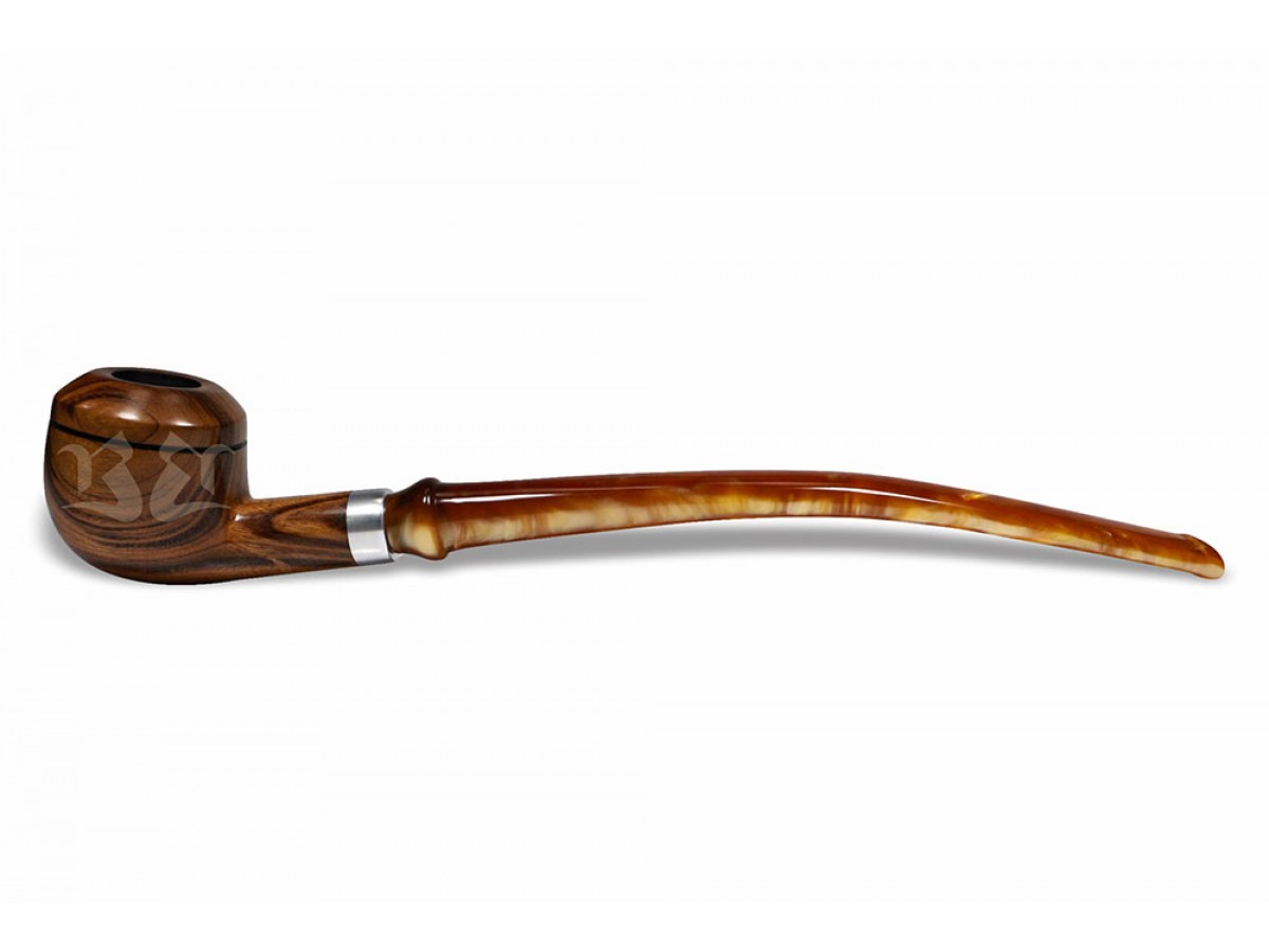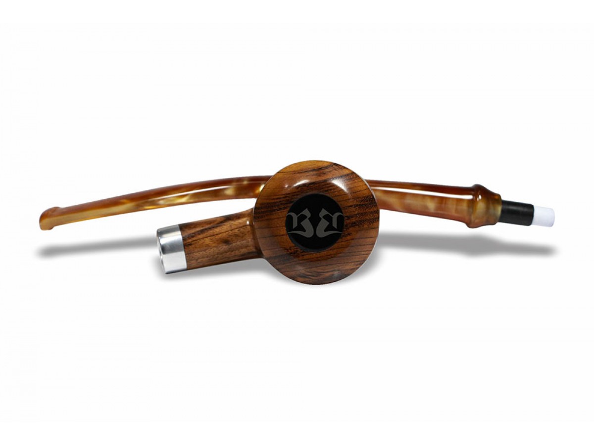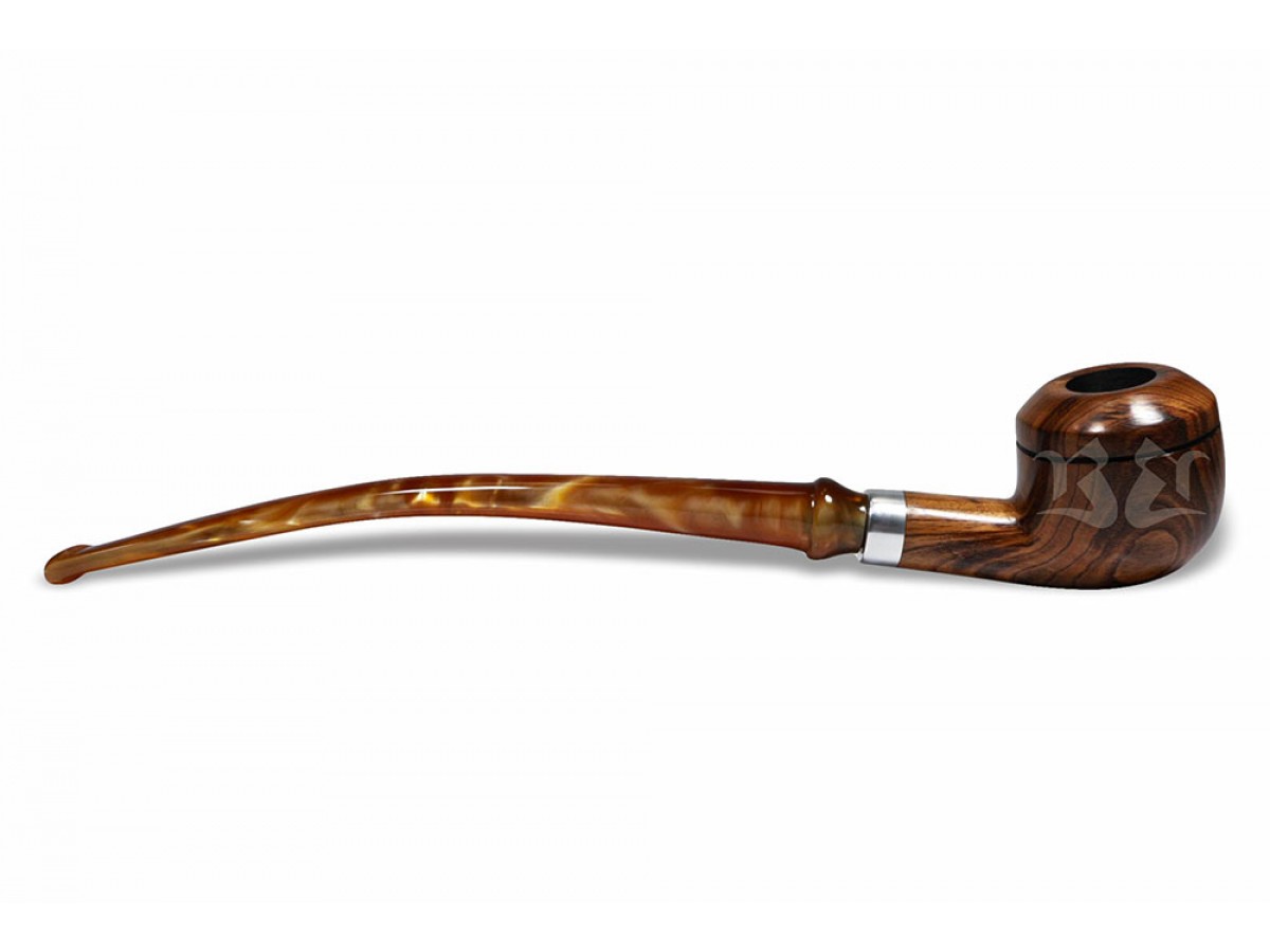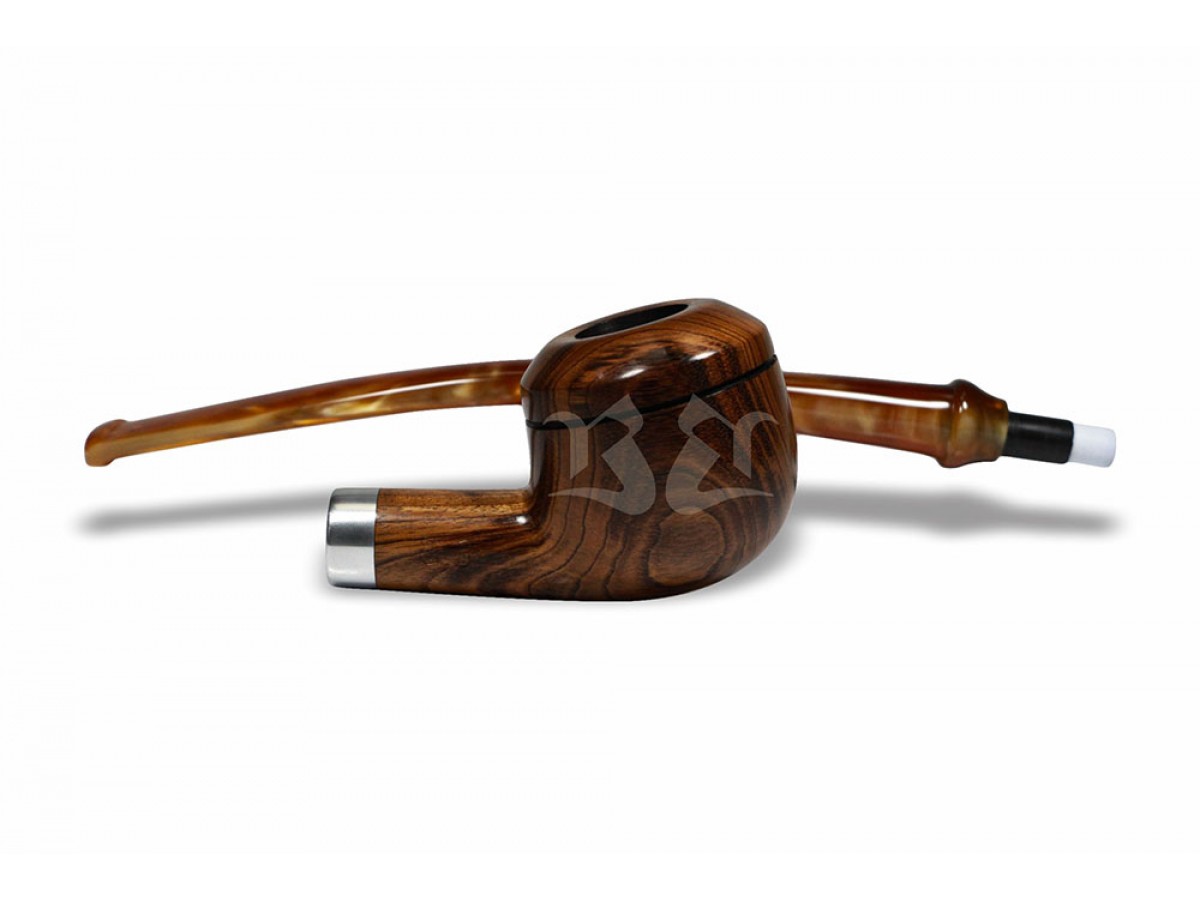 Seu design alongado e formato semi-curvo conferem presença marcante e excelente equilíbrio visual, traduzindo elegância em cada detalhe. O conjunto revela um cachimbo imponente, pensado para quem valoriza estética, conforto e identidade.