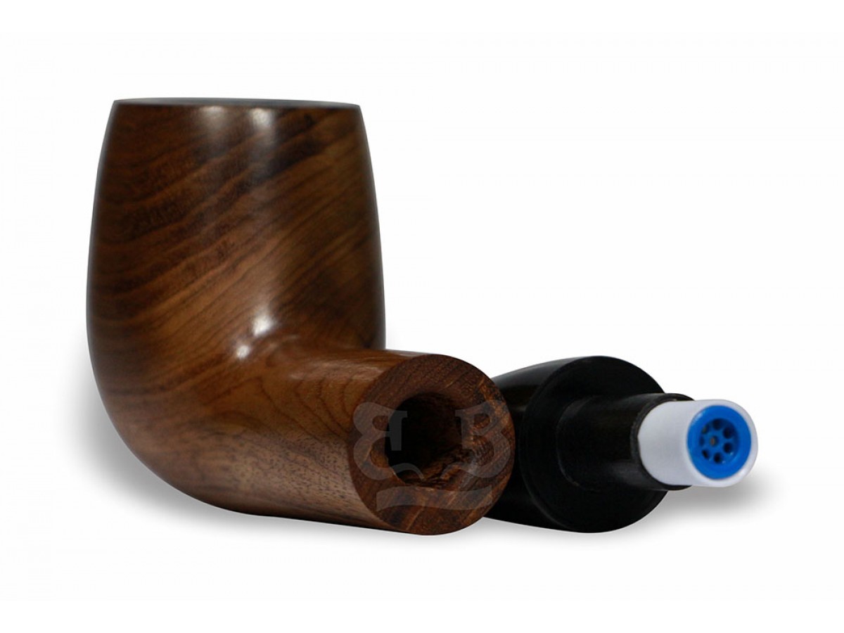 O Cachimbo Bertoldi Premium é confeccionado em madeira nobre nacional, trabalhada artesanalmente e finalizada com acabamento encerado e polido, que evidencia os veios marcantes e os desenhos naturais da madeira.