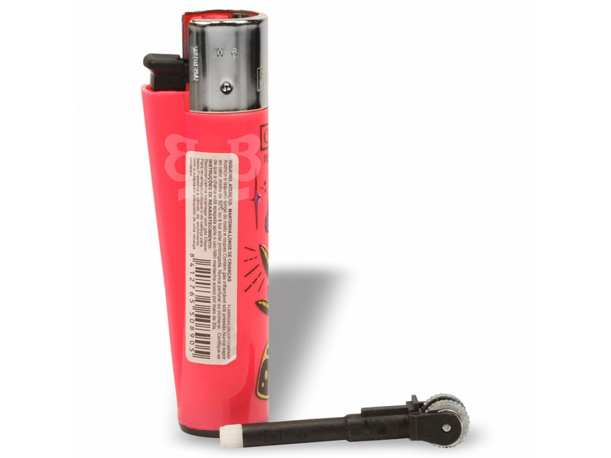 Isqueiro clipper recarregável com pilão removível.